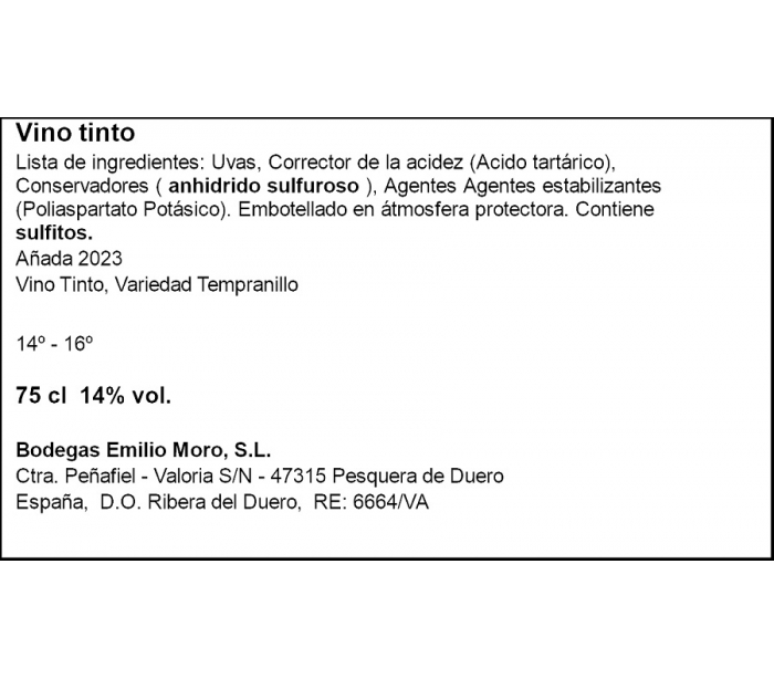 VINO TINTO FINCA RESALSO EMILIO MORO 75 CL.