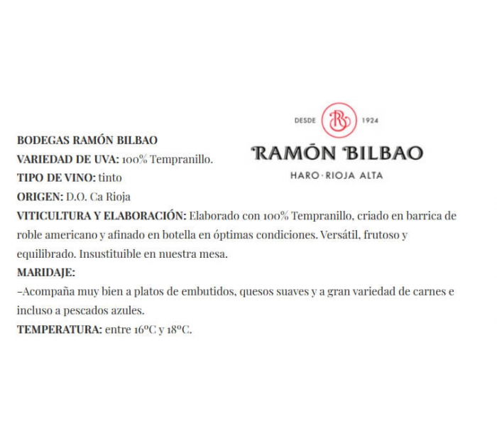 VINO TINTO CRIANZA RAMON BILBAO 75 CL.