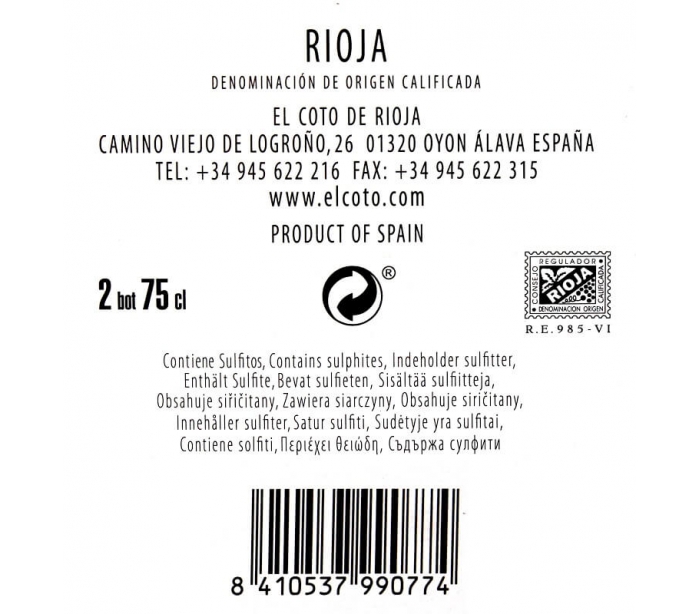 ESTUCHE VINO TINTO RESERVA COTO DE IMAZ 2 BOT 75CL+2 COPAS GRATIS