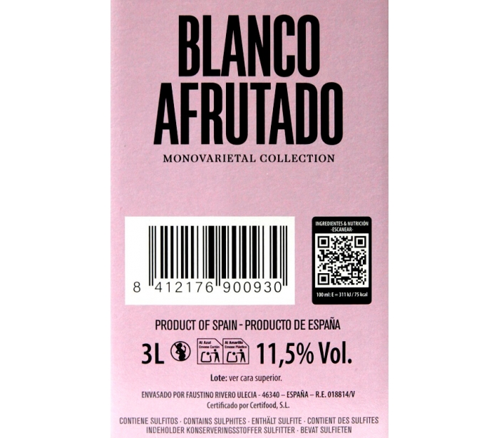 VINO BLANCO AFRUTADO FAUSTINO RIVERO ULECIA 3 L.