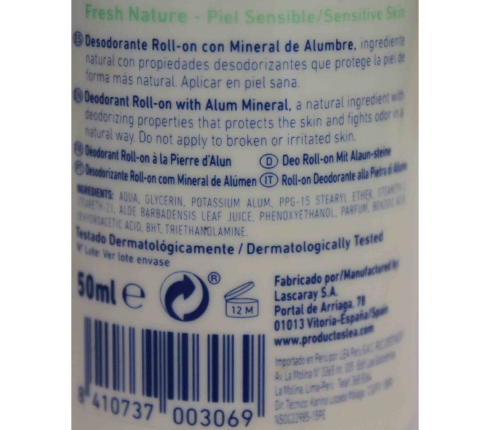 DESODORANTE ROLL-ON FRESH NATURE,ALOE VERA-GLICERI LEA 50 ML.