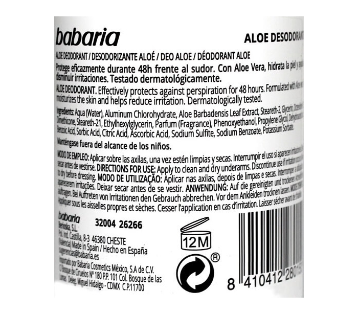 DESODORANTE ROLL-ON ALOE VERA BABARIA 50 ML