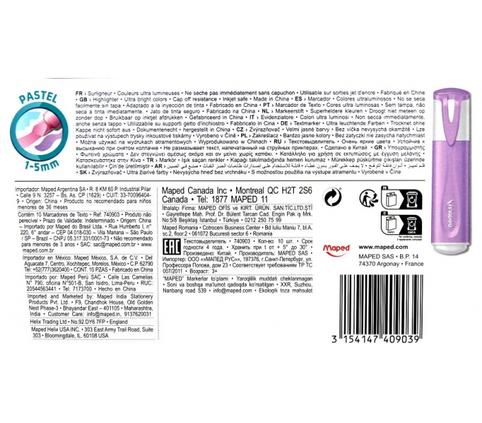 MARCADORES PASTEL MAPED ESTUCHE X 10 UN.