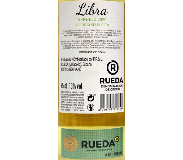 VINO BLANCO VERDEJO SELECCION LIBRA 75 CL.
