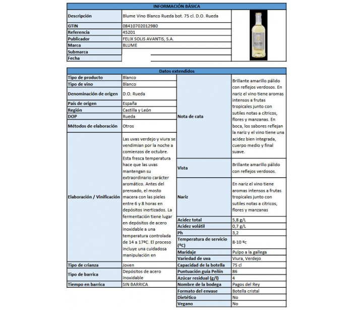 CaracterísticaD.O. RUEDA, VALLADOLID