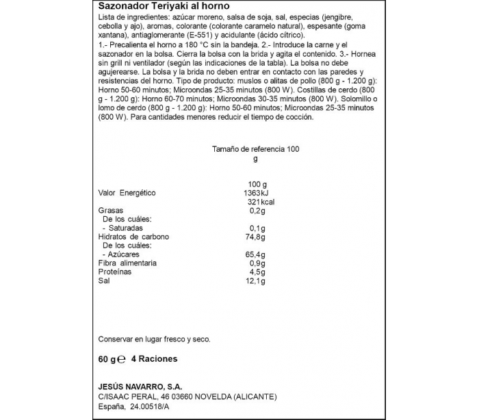 SAZONADOR TERIYAKI CARMENCITA 60 GR.