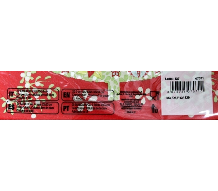 SERVILLETA 3 CAPAS HOLIDAY TIME 20 UN. 33X33 CM.