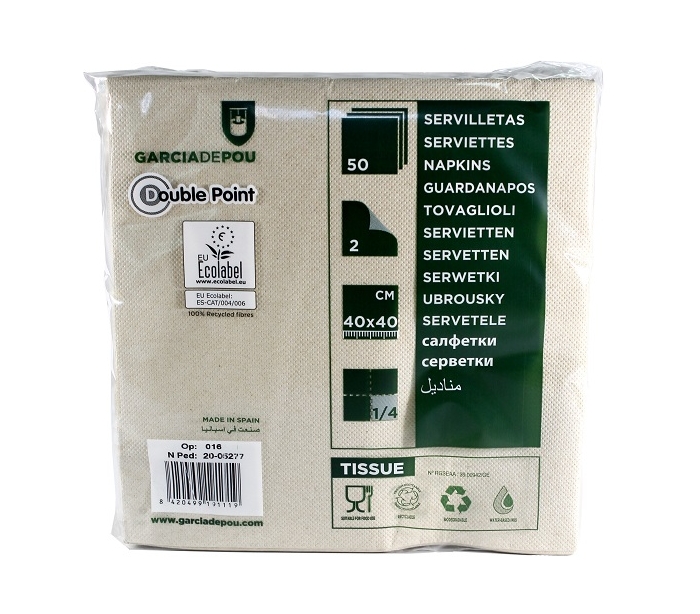 SERVILLETA ECOLABEL 19G/M2 39X39 CM DOUBLE POINT 50 UN. REF.19111