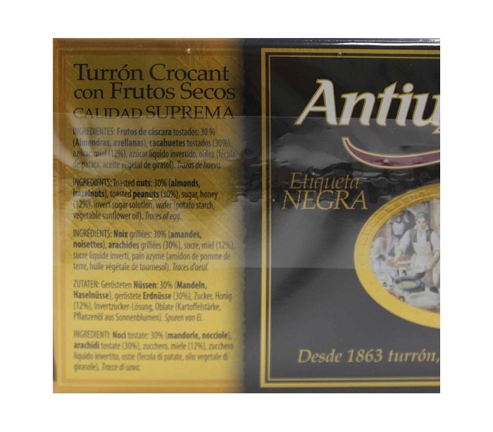 TURRON CROCANT FRUTO SECOS ETIQUETA NEGRA ANTIUXIXONA 150 GR.
