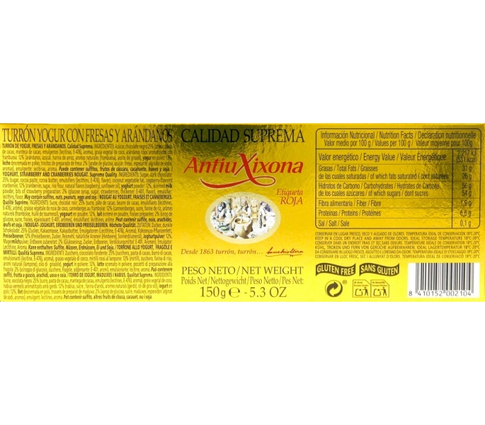 TURRON YOGUR CON FRESAS Y ARANDANOS ANTIUXIXONA 150 GR.
