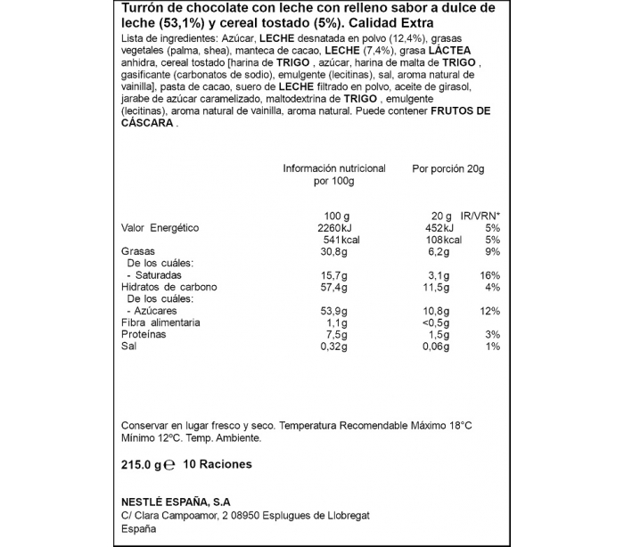 TURRON SABOR A DULCE DE LECHE NESTLE 215 GR.