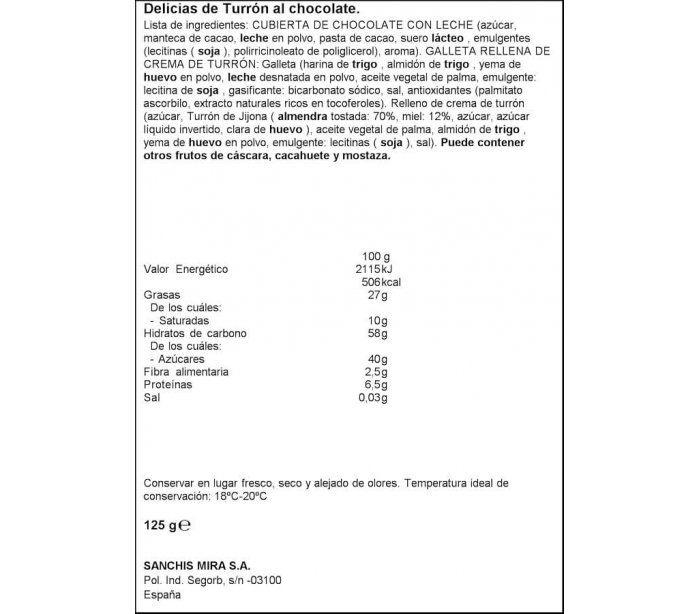 TURRONES DELICIAS CHOCOLATE ANTIUXIXONA 125 GR.
