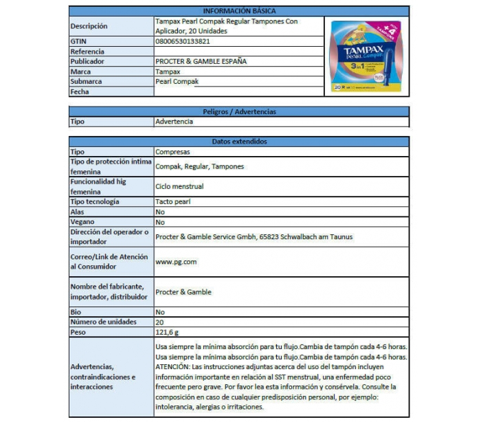 TAMPON PEARL REGULAR TAMPAX 20 UN.