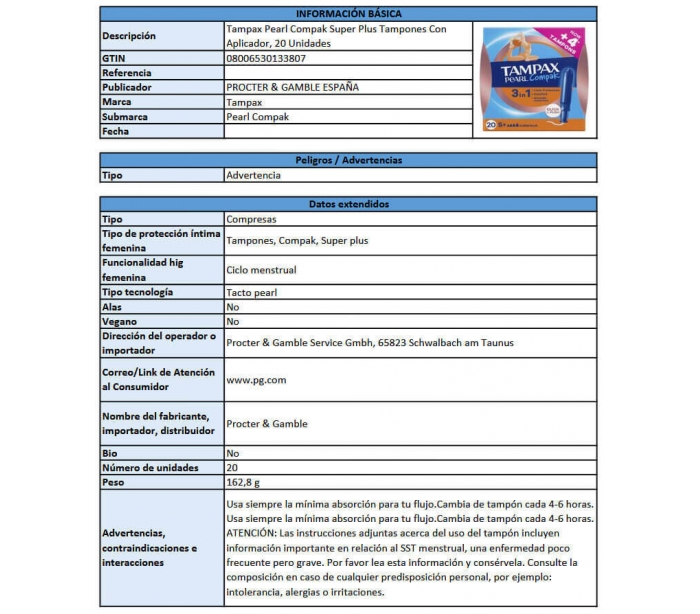 TAMPON PEARL SUPER PLUS TAMPAX 20 UN.