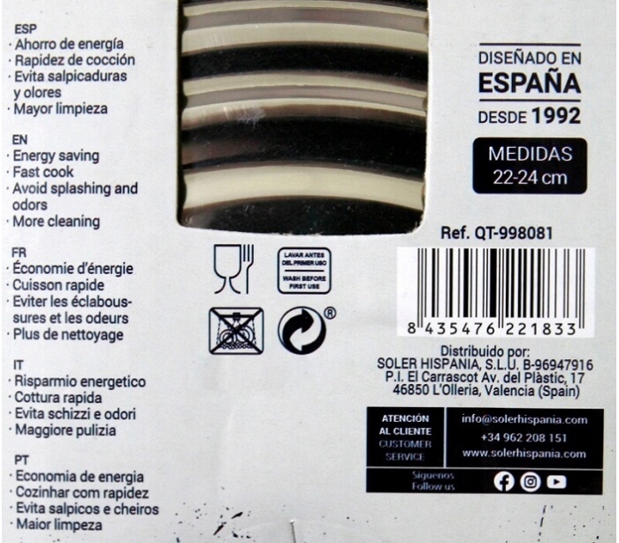 TAPA ACERO INOXIDABLE QUTTIN 22-24 CM