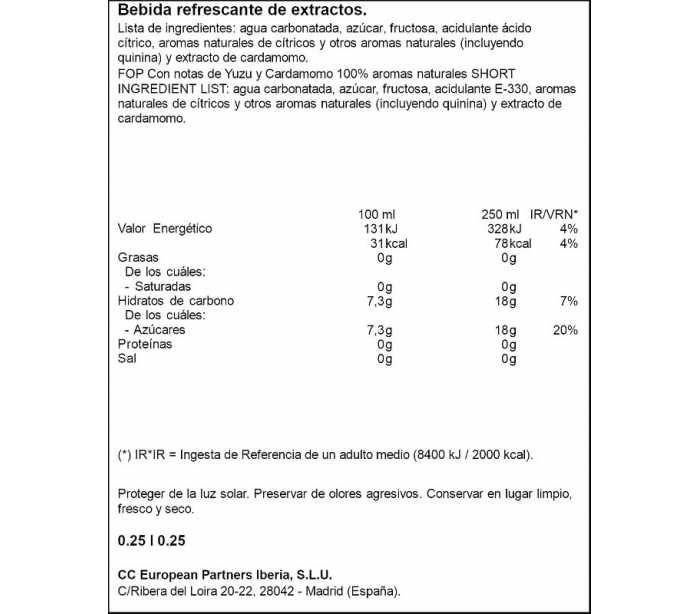 TONICA SIGNATURE YUZU Y CARDAMOMO ROYAL BLISS 250 ML.LATA