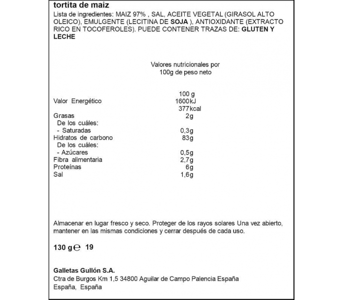 TORTITAS DE MAÍZ ALTEZA 130 GR.