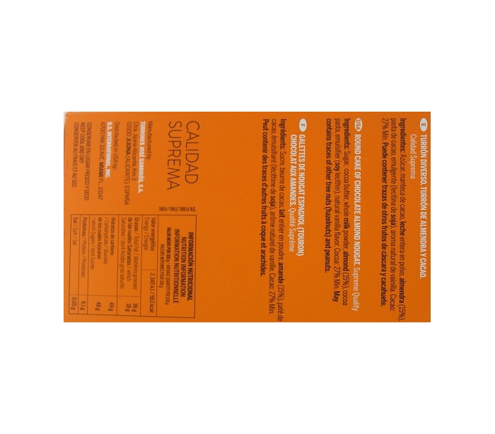 TORTA TURRON CHOCOLATE CON ALMENDRA SUPREMA CASTILLO DE JIJONA 200 GRS.
