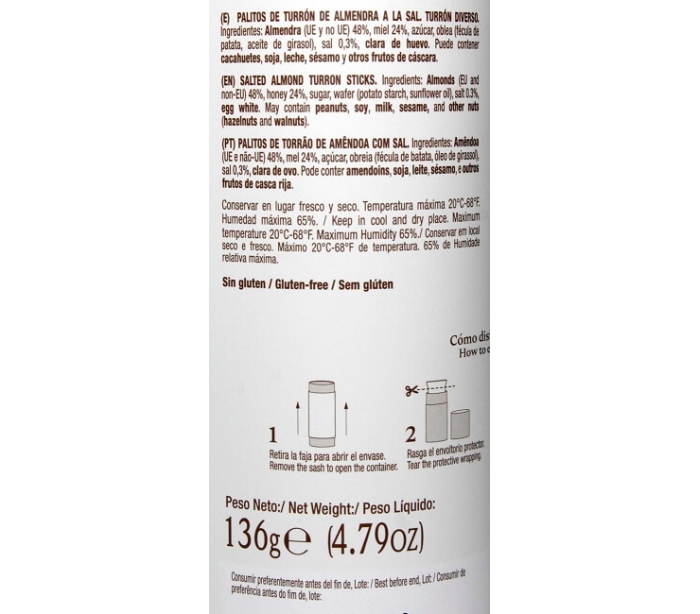 PALITOS TURRON DURO, TRADICIONAL EL ALMENDRO 136 GRS.