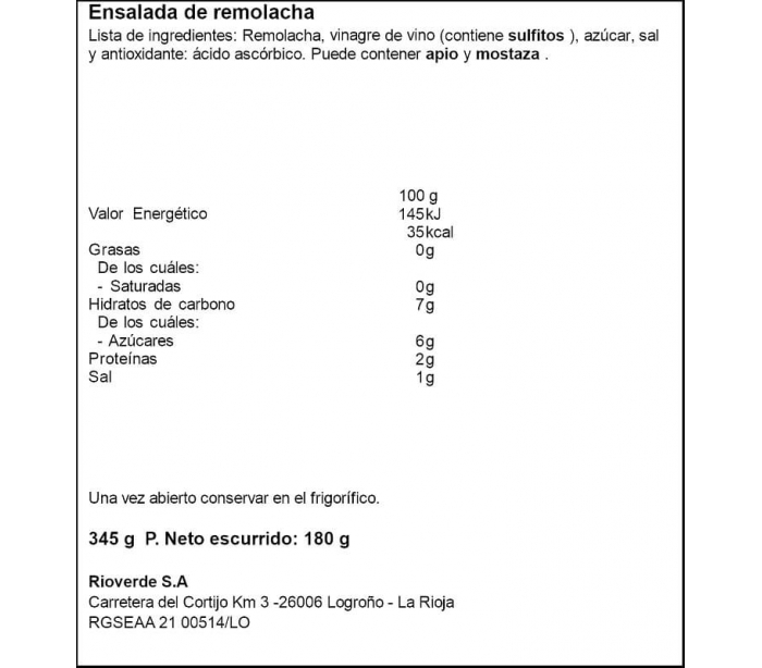 REMOLACHA RALLADA RIOVERDE 180 GRS.