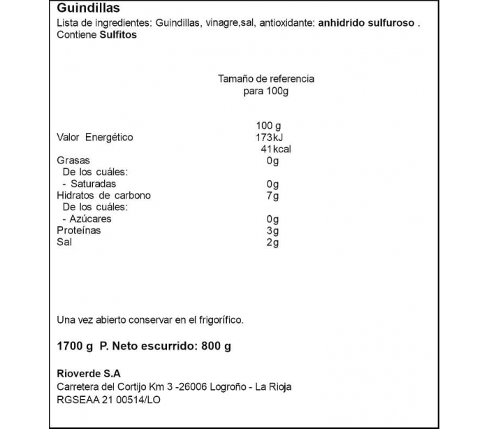 GUINDILLA PRIMERA RIOVERDE 800 GRS.