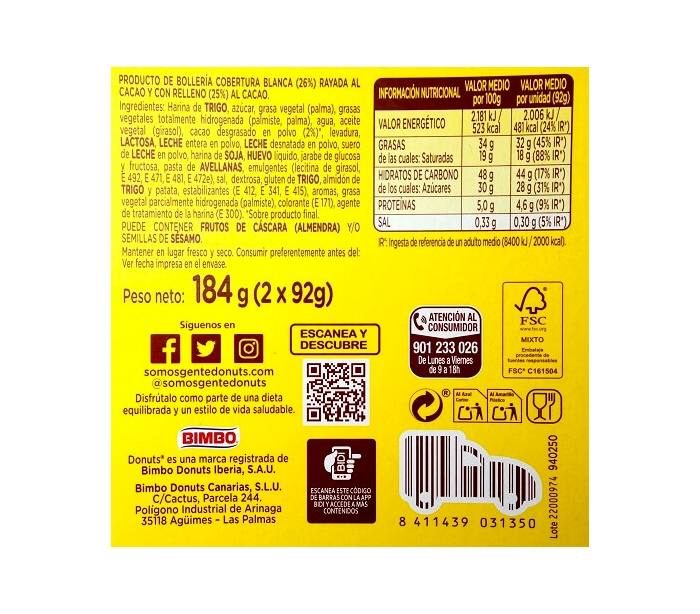 BOLLERIA BLANCO DONUTS PACK 2X92 GRS.