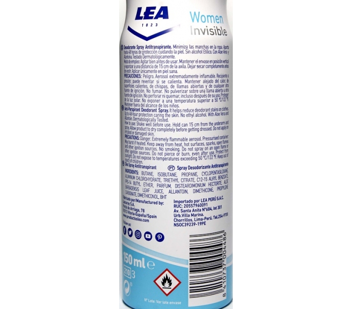 DESODORANTE SPRAY WOMEN INVISIBLE LEA 150 ML.