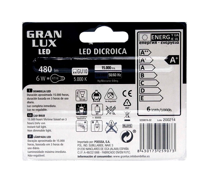 BOMBILLO LED DICROICA 6W.FRIA GRANLUX 3 UN.