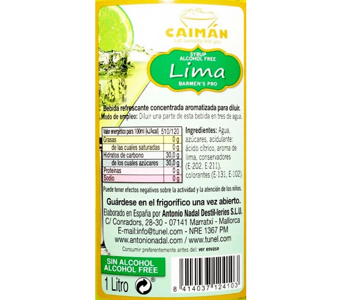LICOR SIN ALCOHOL LIMA CAIMÁN 1 L.