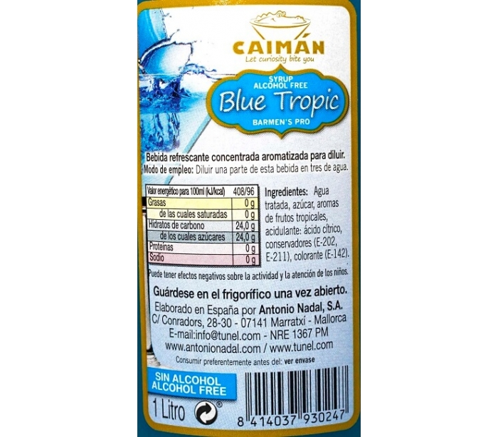 LICOR SIN ALCOHOL BLUE TROPIC CAIMÁN 1 L.