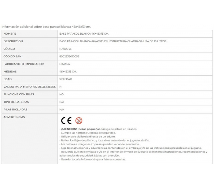 PIE SOMBRILL BASE BLAN18L