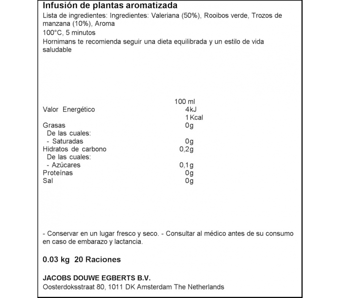 INFUSIÓN VALERIANA HORNIMANS 20 UN.
