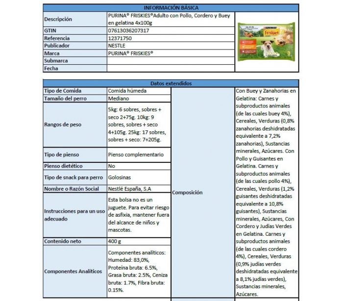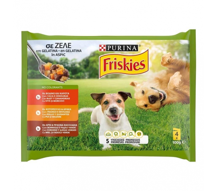 COMIDA PERRO BUEY, POLLO Y CORDERO CON VERDURAS FRISKIES PACK 4X100 GR.
