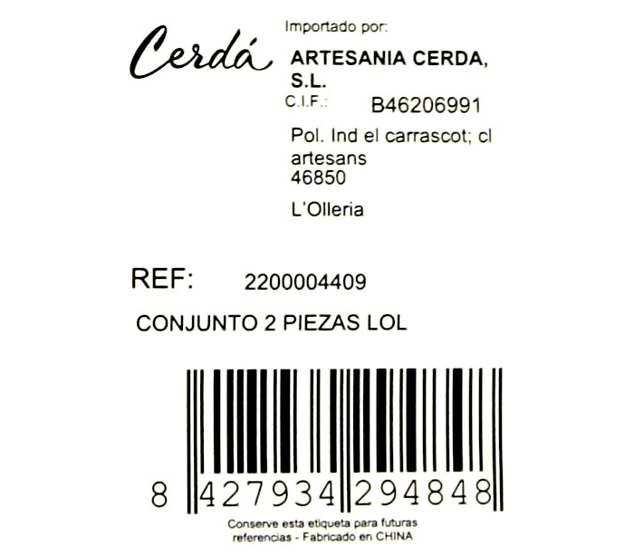 GORRO+GUANTES L.O.L. CERDA' 1 UN