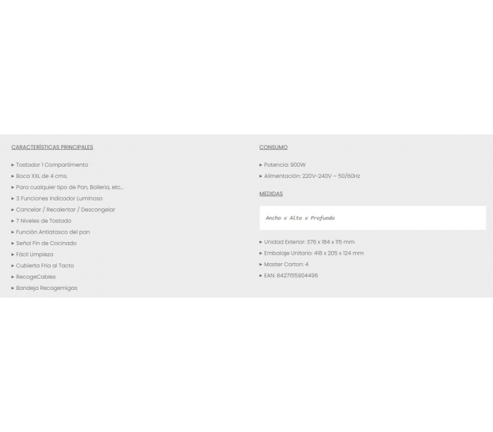 TOSTADOR 1 COMPARTIMENTO LARGO NEVIR 1 UN.
