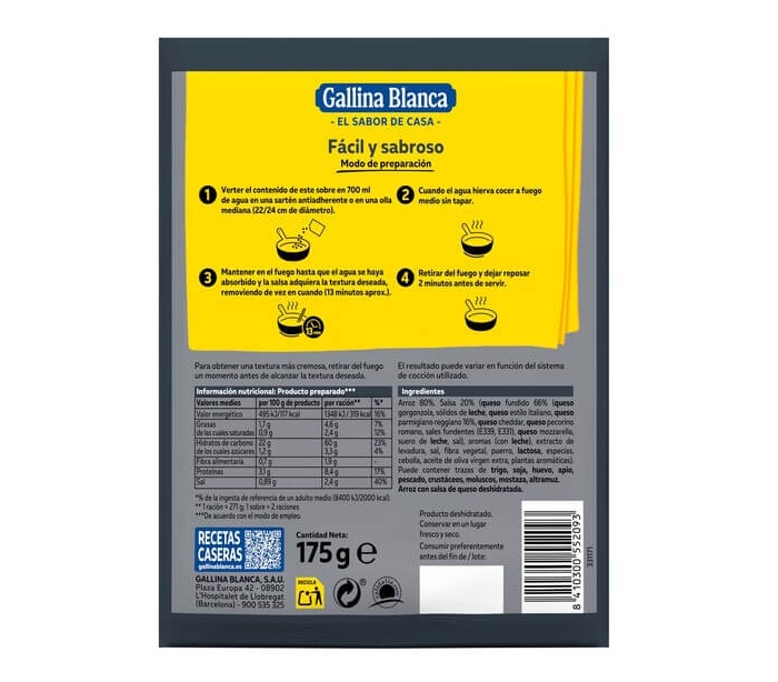RISSOTO A LA PARMESANA GALLINA BLANCA 175 GR.