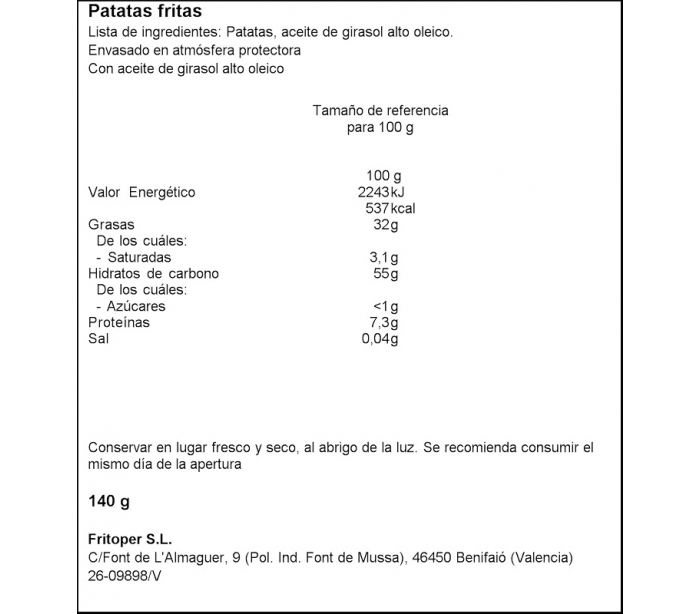 PAPAS FRITAS CASERAS SIN SAL TAMARINDO 115 GR.