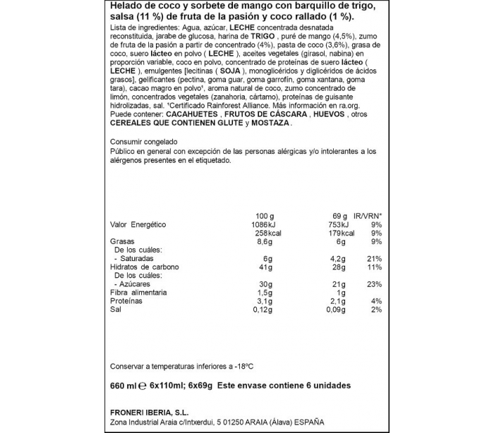 HELADO EXTREME COCO Y MANGO NESTLÉ PACK 6X110 ML.