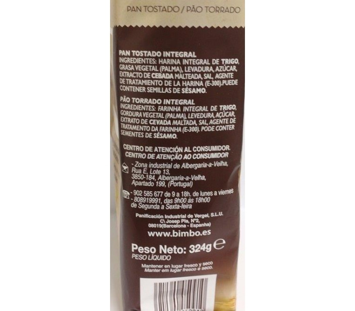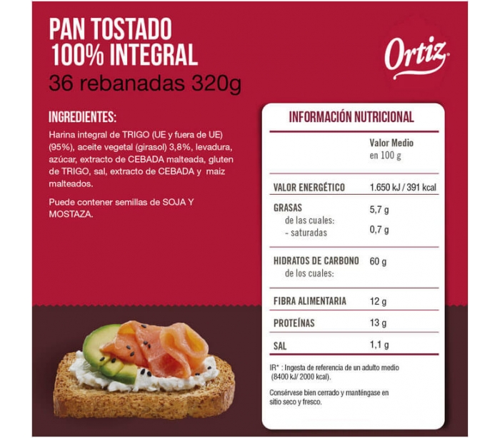 PAN TOSTADO 100% INTEGRAL ORTIZ 320 GR.
